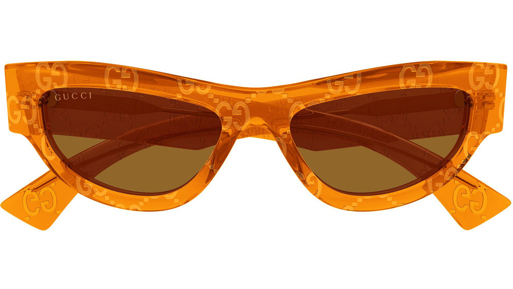 - Colore montatura arancione trasparente lucido con motivo Gucci