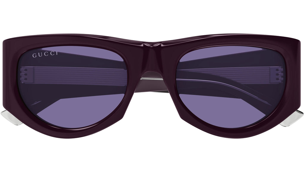 Occhiali da sole Gucci GG1917S 010 donna con montatura rettangolare in acetato riciclato prugna solido e lenti viola tinta unita. Linea: Eyewear. Codice modello: GG1917S. Codice colore: 010. Made in Italy. Rivenditore autorizzato Gucci online. Gli occhiali vengono consegnati con custodia e accessori originali e sono coperti dalla garanzia ufficiale di 12 mesi del produttore.