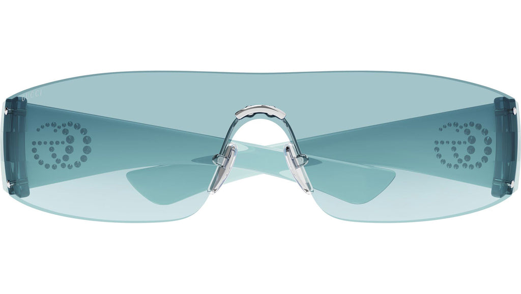 Occhiali da sole Gucci GG1958S 005 unisex con montatura mascherina in metallo argento lucido e lenti blu chiaro sfumato in bio nylon. Linea: Emblem. Codice modello: GG1958S. Codice colore: 005. Made in Japan. Rivenditore autorizzato Gucci online. Gli occhiali vengono consegnati con custodia e accessori originali e sono coperti dalla garanzia ufficiale di 12 mesi del produttore.