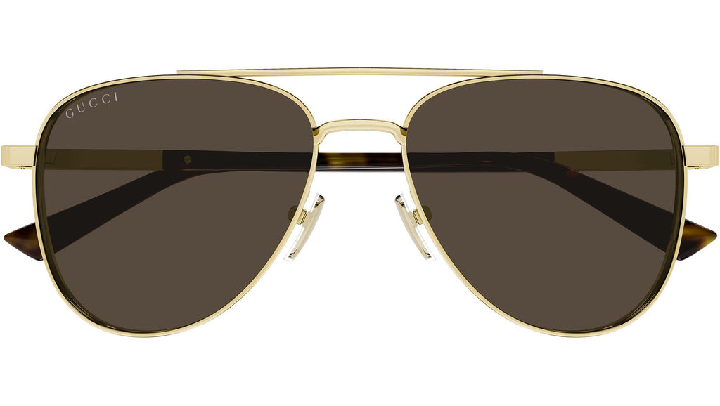 Occhiali da sole Gucci GG1962S 002 uomo con montatura aviatore in metallo oro endura lucido e lenti marrone tinta unita in bio nylon. Linea: Sign. Codice modello: GG1962S. Codice colore: 002. Made in Italy. Rivenditore autorizzato Gucci online. Gli occhiali vengono consegnati con custodia e accessori originali e sono coperti dalla garanzia ufficiale di 12 mesi del produttore.