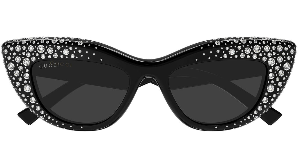 Occhiali da sole Gucci GG2031S 005 donna con montatura cat eye in acetato riciclato nero lucido con strass sul frontale e lenti grigio tinta unita in bio nylon. Linea: Emblem. Codice modello: GG2031S. Codice colore: 005. Made in Italy. Rivenditore autorizzato Gucci online. Gli occhiali vengono consegnati con custodia e accessori originali e sono coperti dalla garanzia ufficiale di 12 mesi del produttore.