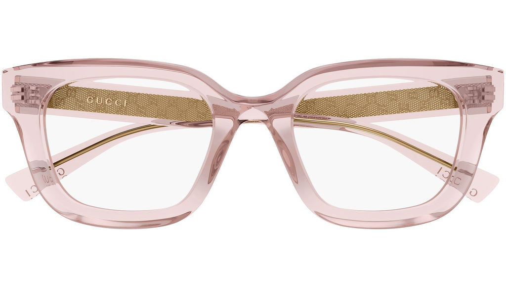 Occhiali da vista Gucci GG2067OL donna con montatura rettangolare in acetato riciclato rosa trasparente lucido e lenti demo. Linea: Sign. Codice modello: GG2067OL. Codice colore calibro 52: 007. Calibro 49: 004. Made in Italy. Rivenditore autorizzato Gucci online. Gli occhiali vengono consegnati con custodia e accessori originali e sono coperti dalla garanzia ufficiale di 12 mesi del produttore.