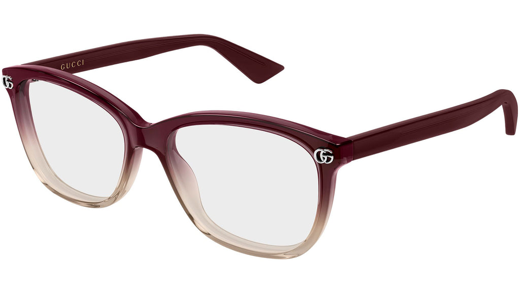 Occhiali da vista Gucci GG2113O donna con montatura rettangolare in acetato riciclato borgogna lattiginoso sfumato a marrone chiaro trasparente lucido e lenti demo. Linea: Emblem. Codice modello: GG2113O. Codice colore calibro 55: 010. Calibro 55: 001. Made in Italy. Rivenditore autorizzato Gucci online. Gli occhiali vengono consegnati con custodia e accessori originali e sono coperti dalla garanzia ufficiale di 12 mesi del produttore.