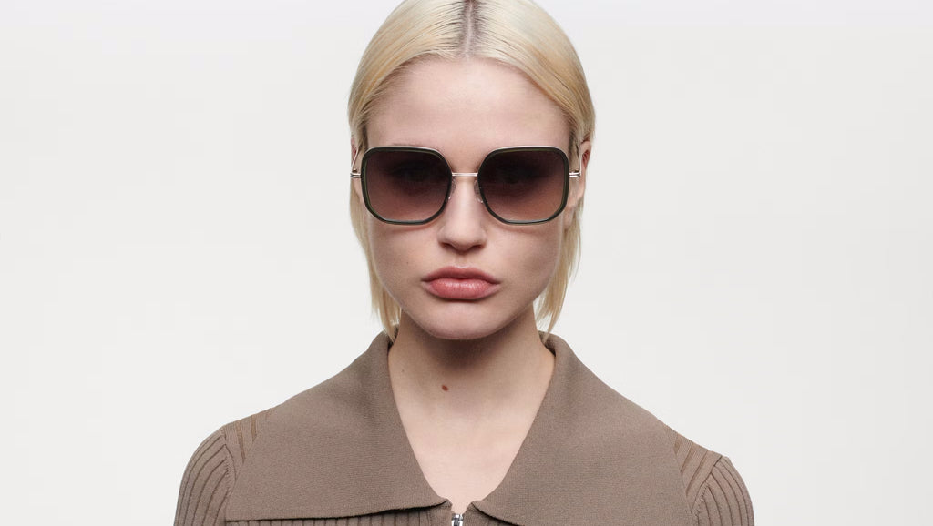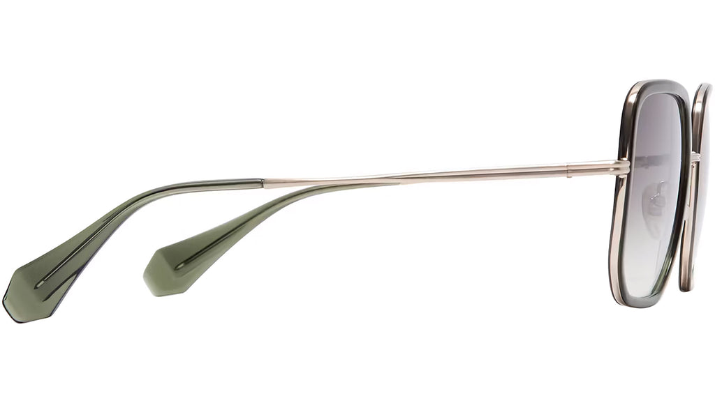Occhiali da sole Gigi Studios modello 6926 Audrey codice colore 7 in verde oro. Un occhiale classico di forma geometric full rim in acetato e metallo con lenti verde. Il marchio garantisce la massima qualità costruttiva, grazie alla meticolosa selezione dei materiali, in collaborazione con i migliori fornitori italiani, tedeschi e giapponesi. Gigi Studios offre un'esperienza visiva eccezionale con lenti CR-39, confortevoli e sicure, che assorbono efficacemente i raggi UVA e UVB.