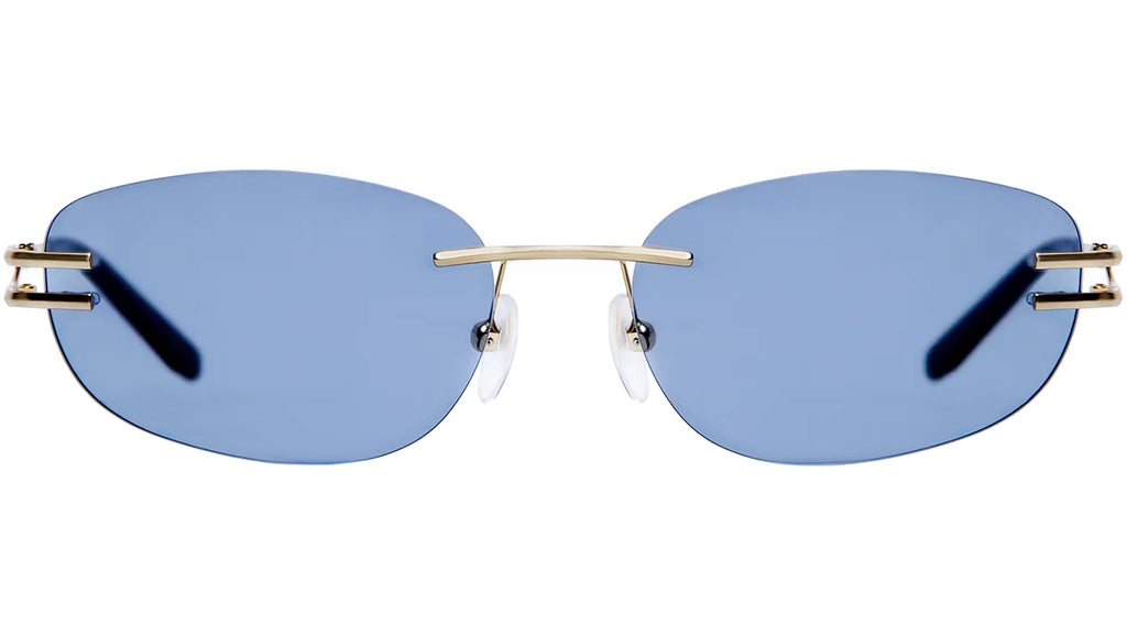 Occhiali da sole Gigi Studios modello 6861 Michela codice colore 3 in oro. Un occhiale classico di forma oval rimless in acciaio con lenti blu. Il marchio garantisce la massima qualità costruttiva, grazie alla meticolosa selezione dei materiali, in collaborazione con i migliori fornitori italiani, tedeschi e giapponesi. Gigi Studios offre un'esperienza visiva eccezionale con lenti CR-39, confortevoli e sicure, che assorbono efficacemente i raggi UVA e UVB.