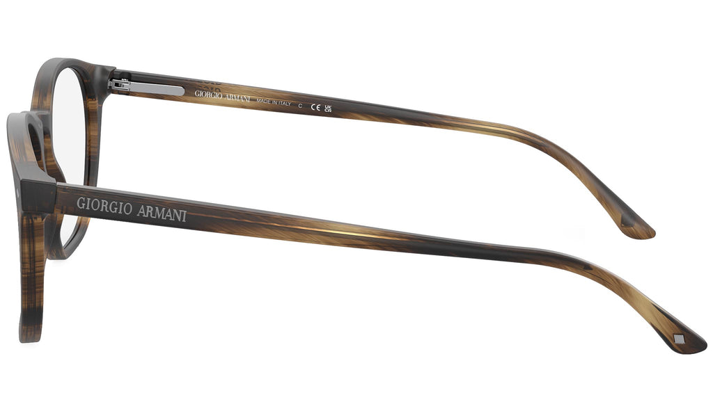 Occhiali da vista Giorgio Armani linea Frames Of Life modello AR 7074 codice colore 5405 con montatura full rim in acetato marrone scuro opaco a righe e lenti demo. Fitting: ponte nasale alto. Linea: Frames Of Life. Codice modello: AR7074. Codice colore: 5405. Rivenditore Giorgio Armani autorizzato online. Tutti i modelli Armani vengono consegnati con custodia e accessori originali e sono coperti da garanzia ufficiale del produttore di 12 mesi.
