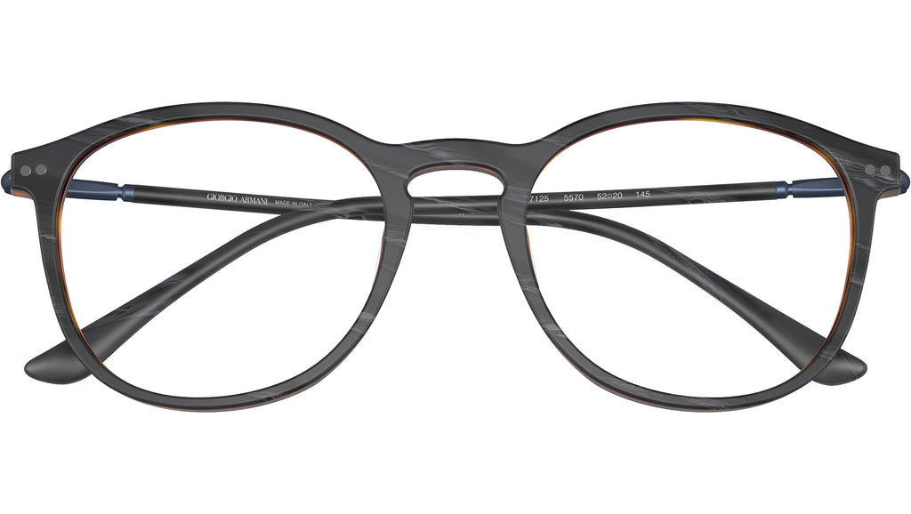 Occhiali da vista Giorgio Armani linea Frames Of Life modello AR 7125 codice colore 5570 con montatura full rim in acetato corno grigio opaco e lenti demo. Fitting: ponte nasale alto. Linea: Frames Of Life. Codice modello: AR7125. Codice colore: 5570. Rivenditore Giorgio Armani autorizzato online. Tutti i modelli Armani vengono consegnati con custodia e accessori originali e sono coperti da garanzia ufficiale del produttore di 12 mesi.