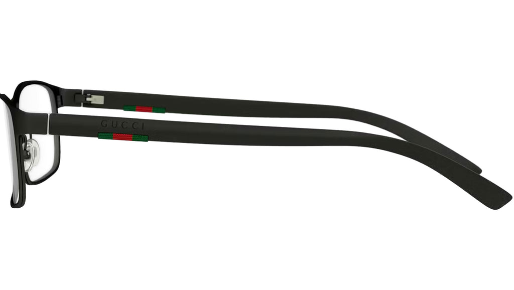 Occhiali da vista Gucci modello GG0614O linea Web in metallo forma rettangolare nero semiopaco con aste in nero e lenti demo. Rivenditore autorizzato Gucci online. Gli occhiali vengono consegnati con custodia e accessori originali e sono coperti dalla garanzia ufficiale di 12 mesi del produttore.