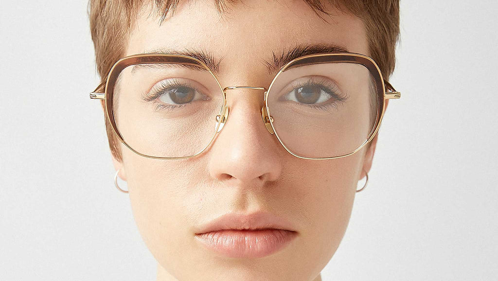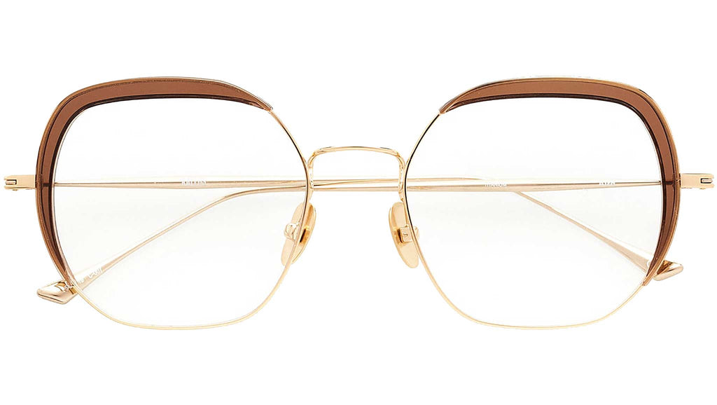 Le montature da vista in acetato e titanio Aird 7 di Kaleos sono una scelta elegante e sofisticata con le loro montature monocromatiche trasparenti marrone e il profilo e il ponte in titanio color oro. Le placchette nasali e le aste in titanio regolabili garantiscono una perfetta aderenza. Realizzati a mano con materiali di alta qualità e complesse lavorazioni, questi occhiali unici combinano gusto contemporaneo e funzionalità, dimostrando l'impegno di Kaleos per una qualità insuperabile e una meticolosa attenzione ai dettagli.