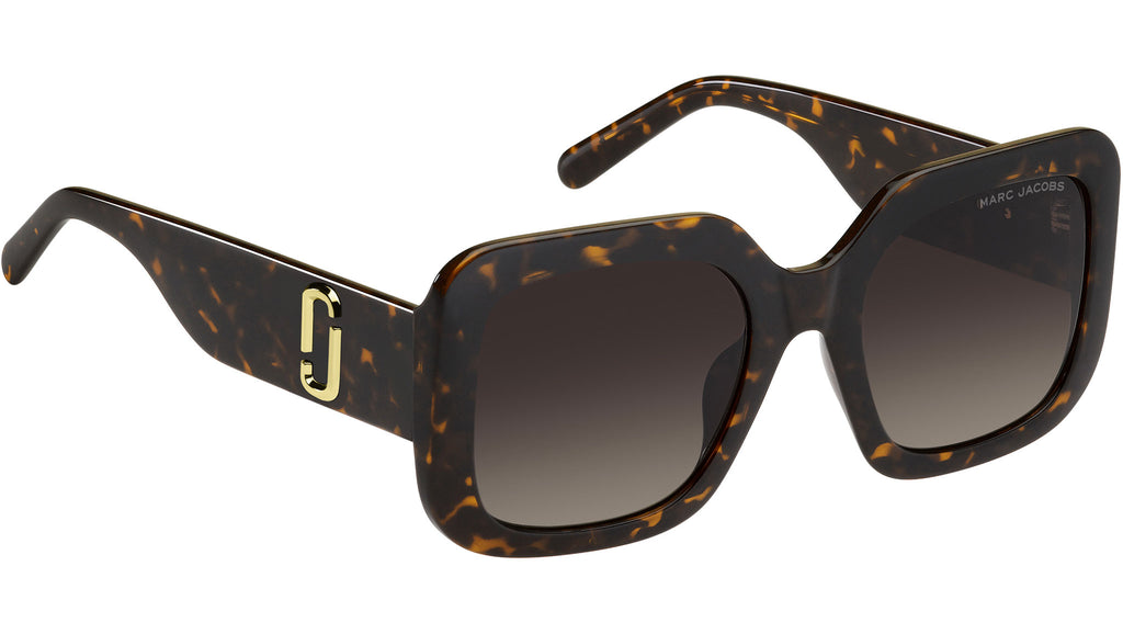 Occhiali da sole Marc Jacobs modello MARC 647/S codice colore 086 HA in iniettato avana con lenti color marrone sfumato. Veri must-have per chi ama la moda, gli occhiali da donna Snapshot di Marc Jacobs richiamano l'omonima borsa, modello tra i più desiderati dagli appassionati del brand. Questa selezione di occhiali da sole traduce l'estetica cool e iconica della Snapshot bag in montature espressive, con aste colour-block per un tocco inaspettato o in tonalità classiche come il nero e l'avana. Il dettaglio logo JJ tridimensionale sulle aste completa i modelli con la firma inconfondibile di Marc Jacobs. Rivenditore autorizzato online Marc Jacobs.