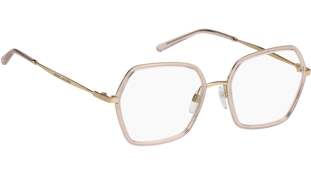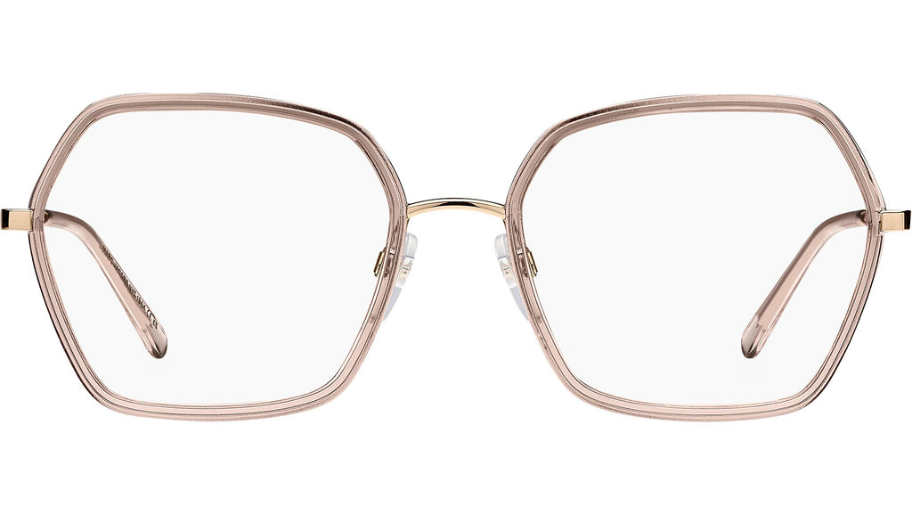 Occhiali da vista Marc Jacobs modello MARC 665 codice colore K67 in metallo oro pesca con lenti demo. Estremamente comodi e realizzati con la massima attenzione al dettaglio, gli occhiali Soho di Marc Jacobs comprendono i modelli da vista best-seller del brand, abbinati a silhouette geometriche inaspettate e innovative. L'eyewear è caratterizzato da cerchi a contrasto di colore, interpretati sotto forma di frontali in acetato o in metallo incapsulato. Il nuovo design delle aste in metallo è un esempio di abilità tecnica ed ottima funzionalità. I naselli regolabili e i terminali in acetato assicurano un fit confortevole. Rivenditore autorizzato online Marc Jacobs.
