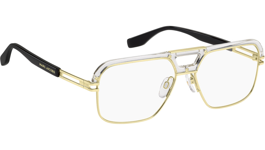 Occhiali da vista Marc Jacobs modello MARC 677 codice colore LOJ in metallo cristallo oro con lenti demo. Energica, sofisticata, decisa. La collezione di occhiali da uomo Double Metal Trim di Marc Jacobs vanta un design ricercato che unisce diversi colori e materiali in modelli full metal o che abbinano metallo e acetato. Arricchiti dall'iconico motivo double JJ in metallo sul frontale, l'eyewear della collezione comprende montature a tinta unita o trasparenti. Dettagli metallici distintivi aggiungono una nota cool alle silhouette maschili, pensate per essere versatili e facili da indossare. Rivenditore autorizzato online Marc Jacobs.