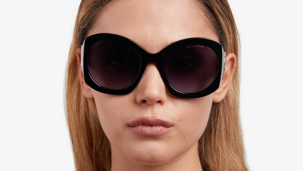 Occhiali da sole Marc Jacobs modello MARC 722/S codice colore 2M2 9O in acetato oro nero con lenti color grigio scuro sfumato. Caratterizzati da forme ampie e moderne, la collezione eyewear da donna See Through J Marc di Marc Jacobs ha un'allure cool e dinamica. Questi occhiali da sole sono realizzati in acetato lucido con aste ampie e scultoree, amplificate dagli iconici dettagli JJ in metallo in una originale variante oversize trasparente. La sofisticata costruzione dei musetti e il logo sulla lente sinistra completano il design. Rivenditore autorizzato online Marc Jacobs.