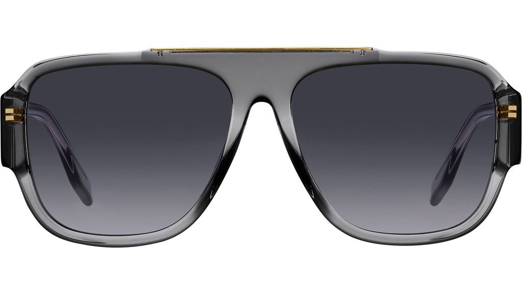 Occhiali da sole Marc Jacobs modello MARC 756/S codice colore KB7 9O in acetato grigio con lenti color grigio scuro sfumato. L'estetica inconfondibile dell'eyewear da uomo Marc Jacobs si nota nei distintivi dettagli in metallo che definiscono questi occhiali da sole in acetato, per un look audace e maschile. La silhouette pilot presenta un ciliare piatto con una placca in metallo logata, dettagli metallici raffinati sui musetti, e nuove aste ultra-thick che creano un look dal forte impatto da qualsiasi angolazione. Queste montature sono disponibili in una palette essenziale di grigio e nero, con lenti tinta unita o sfumate. Rivenditore autorizzato online Marc Jacobs.