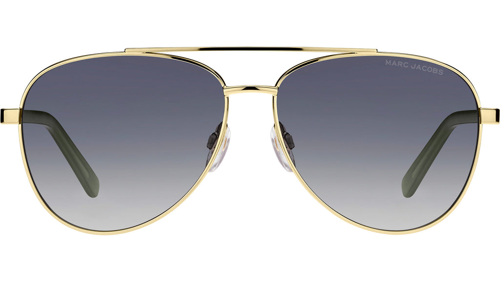 Occhiali da sole Marc Jacobs modello MARC 760/S codice colore PEF GB in metallo oro verde con lenti color grigio azzurro. Omaggio alla borsa più iconica di Marc Jacobs, questi occhiali da sole rimangono un evergreen. Il frontale in metallo è abbinato ad aste minimali, con terminali extra-long in acetato e un'elegante interpretazione del nome del brand. Il modello è completato da un piccolo logo inciso al laser sulla lente sinistra. Rivenditore autorizzato online Marc Jacobs.