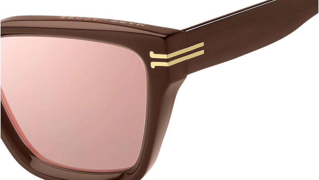 Questi occhiali da sole sono pensati per le trendsetter amanti della moda. La grande montatura squadrata è realizzata in acetato, con il frontale smussato dal moderno effetto 3D che incornicia le lenti colorate. Da notare l’iconica doppia J in metallo sulle tempie, il logo lettering The Marc Jacobs lungo la barra ciliare e le placche logate all’interno delle aste e dei terminali. Le cerniere a cinque snodi assicurano la massima resistenza nel tempo.
