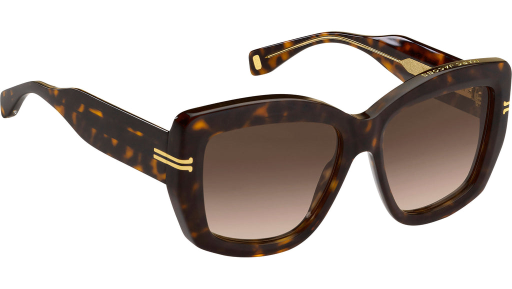 Occhiali da sole Marc Jacobs modello MJ 1062/S codice colore KRZ in acetato havana cristallo con lenti color marrone sfumato. Innovazione e stile al passo con la moda. Questi occhiali da sole da donna catturano lo spirito all'avanguardia di Marc Jacobs con la loro audace montatura a occhio di gatto in acetato, rifinita con i bordi smussati per un moderno effetto 3D. I dettagli iconici aggiungono un tocco finale unico: il motivo JJ specchiato sulle tempie, il logo lungo la barra ciliare e le esclusive placche logate all’interno delle aste. Disponibili in una vasta gamma di tonalità. Rivenditore autorizzato online Marc Jacobs.