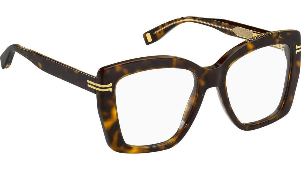 Occhiali da vista Marc Jacobs modello MJ 1064 codice colore KRZ in acetato havana cristallo con lenti demo. Innovazione e stile al passo con la moda. Questi occhiali da vista da donna catturano lo spirito all'avanguardia di Marc Jacobs con la loro audace montatura a occhio di gatto, scolpita in acetato. I dettagli iconici aggiungono un tocco finale unico: il motivo JJ specchiato sulle tempie, il logo lungo la parte superiore e le delicate placche logate all’interno delle aste. Disponibili in una vasta gamma di tonalità. Rivenditore autorizzato online Marc Jacobs.