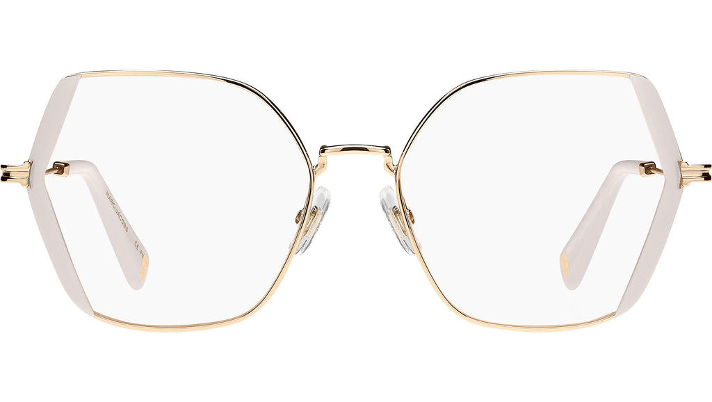 Occhiali da vista Marc Jacobs modello MJ 1068 codice colore Y3R in metallo oro avorio con lenti demo. Il connubio perfetto tra comfort e glamour: questi occhiali da vista da donna aggiornano la femminile montatura a farfalla con una leggera costruzione in metallo. La silhouette geometrica crea un raffinato contrasto con le sottili aste incise con il logo Marc Jacobs per un tocco esclusivo e alla moda. Discreti ma d’impatto i dettagli JJ specchiati sulle tempie e le placche MJ sui naselli e i terminali. Disponibili in una raffinata palette stagionale dall'allure senza tempo. Rivenditore autorizzato online Marc Jacobs.