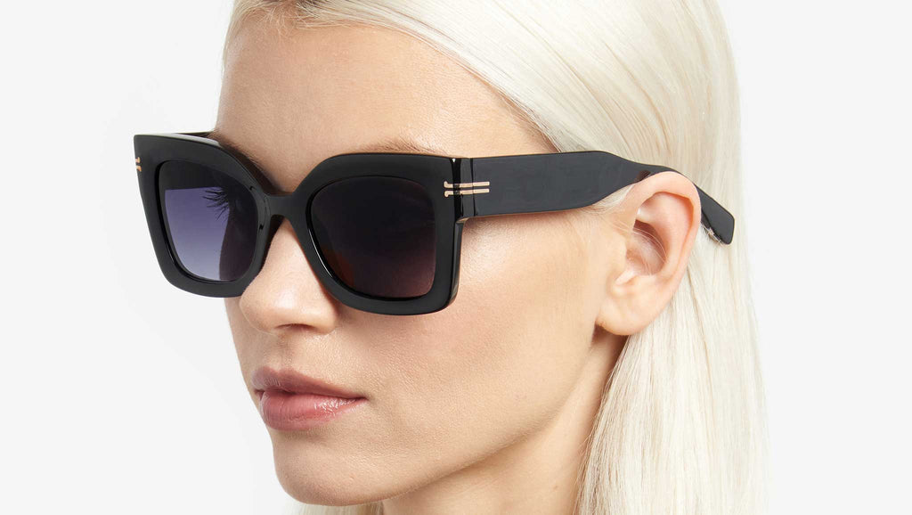 Occhiali da sole Marc Jacobs modello MJ 1073/S codice colore 807 9O in acetato nero con lenti color grigio scuro sfumato. Rivenditore autorizzato online Marc Jacobs.