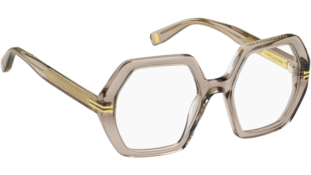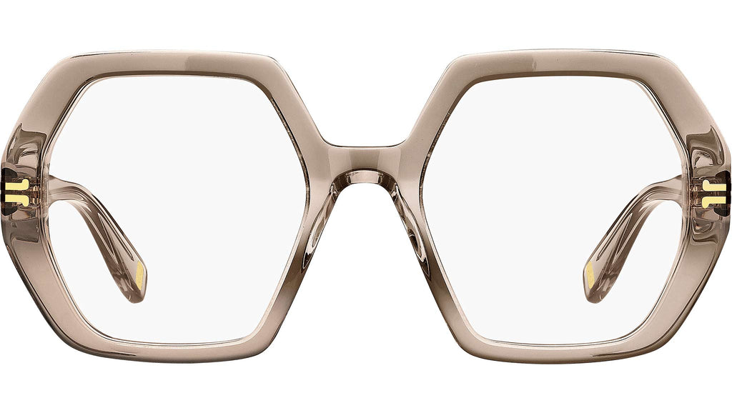 Occhiali da vista Marc Jacobs modello MJ 1077 codice colore 10A in acetato beige con lenti demo. La collezione eyewear Icon di Marc Jacobs esprime un carattere audace e positivo attraverso volumi decisi e dettagli distintivi che rendono questi occhiali da vista immediatamente riconoscibili. Le montature combinano un moderno effetto smussato 3D con l'iconico motivo Mirror JJ che adorna frontale e aste. Il logo Marc Jacobs è inciso sulla parte superiore del frontale e all'interno dei terminali per un tocco raffinato. Rivenditore autorizzato online Marc Jacobs.
