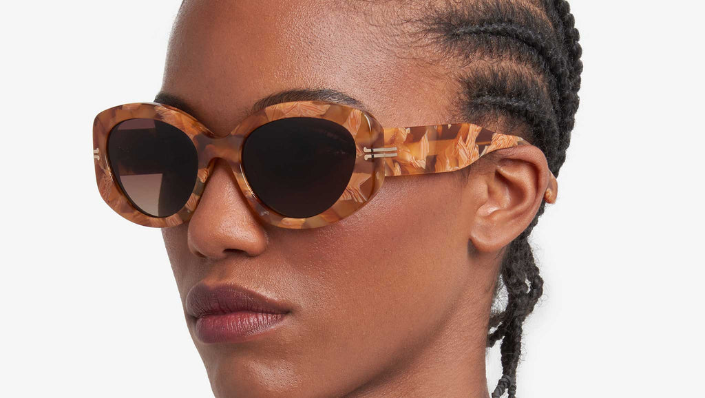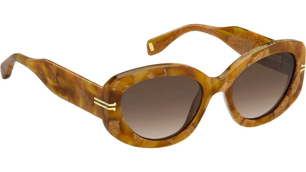Occhiali da sole Marc Jacobs modello MJ 1099/S codice colore 03Y HA in acetato marrone marmorizzato con lenti color marrone sfumato. La collezione eyewear Icon di Marc Jacobs richiama i codici estetici più distintivi del brand. Dal carattere deciso e sofisticato, queste montature sono realizzate in acetato e arricchite da elementi iconici. Il ciliare è decorato con il logo del brand sotto la vernice con una speciale tecnica di foto incisione, mentre le aste presentano il monogramma MJ all'interno, il dettaglio JJ in metallo e una placca metallica con logo sui terminali. Disponibili sia come occhiali da sole e occhiali da vista, sono dotati di cerniere a cinque rondelle per la massima resistenza e durata nel tempo. Rivenditore autorizzato online Marc Jacobs.