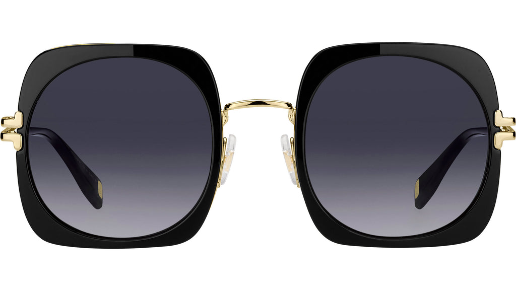 Occhiali da sole Marc Jacobs modello MJ 1101/S codice colore 807 9O in acetato nero con lenti color grigio scuro sfumato. La collezione di occhiali da donna Light/Merge di Marc Jacobs, dalle forme semplici e raffinate, si trova in perfetto accordo con l'estetica del quiet luxury. La selezione include una montatura da vista interamente in metallo, con piccoli tocchi di colore sul frontale, e due occhiali da sole realizzati in un mix di acetato e metallo. Le silhouette moderne sono abbinate ad aste metalliche dalla forma distintiva, rifinite con i dettagli iconici del brand: la doppia JJ in metallo e il logo inciso al laser, oltre al monogramma MJ sui terminali e sui naselli regolabili. Rivenditore autorizzato online Marc Jacobs.