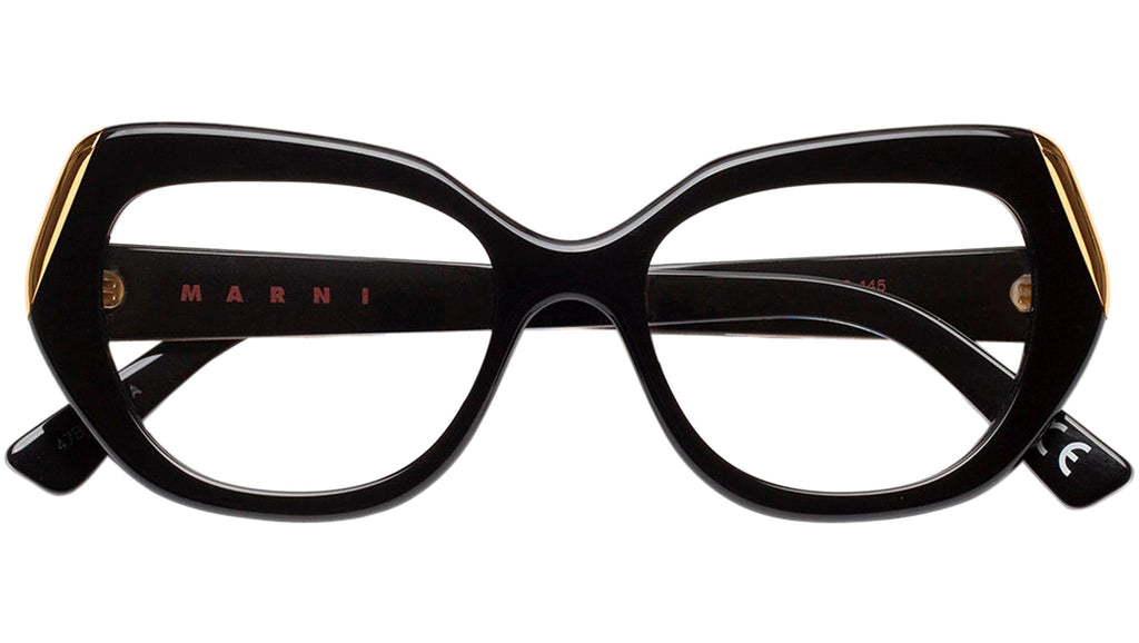 Designed exclusively for Marni, Antelope Canyon is an oversized acetate frame characterised by sculpted rims. The model’s rounded design features a lower nose bridge with a v-shaped brow-line. Metal caps on the sides give this frame a distinctively elegant character. This version comes in black acetate with gold metalwork. Sizes: R Lens Width: 54 mm. Frame Front: Frame Side: 145 mm. Product Code Size R: 47B