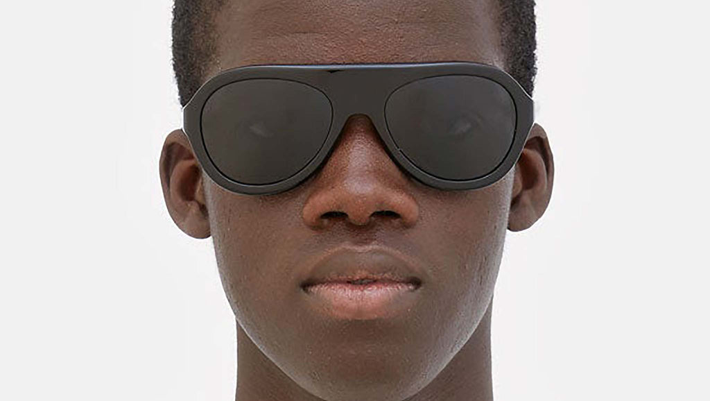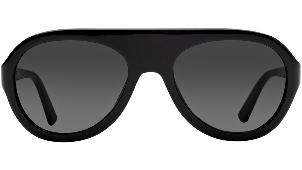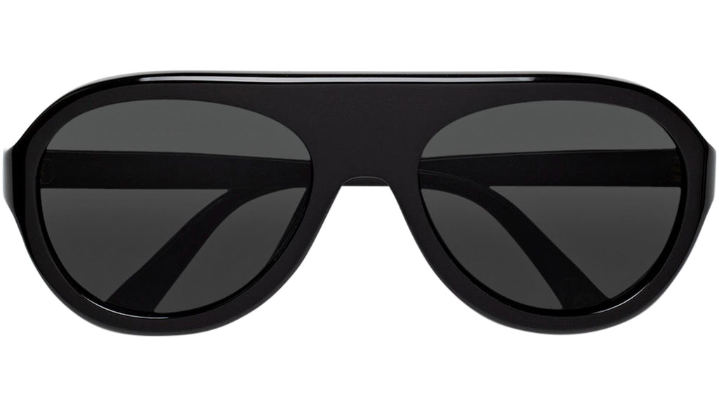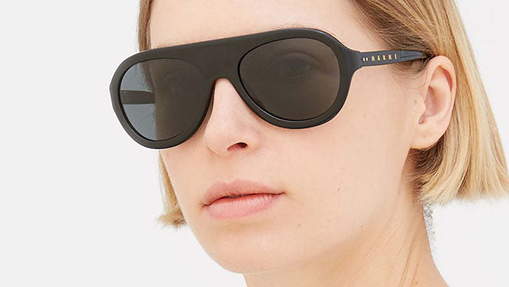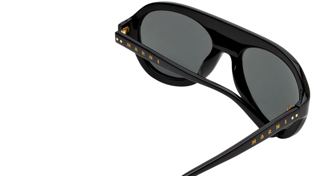 Low bridge fit. Mount Toc is a bold interpretation of classic aviator-style designs. In true Marni fashion, this timeless design was updated with bold geometries and quirky detailing, for an aesthetics that references 1970s sportswear glamour. Its broad structure features a sturdy nose-bridge and pear-shape lenses encased within chunky acetate rims. A unique detail: wrap-around temple design. This model comes in black acetate with matching lenses. Sizes: R / R Lens Width: Frame Front: Frame Side: Product Code Size R: T4T Product Code Size R: FB5
