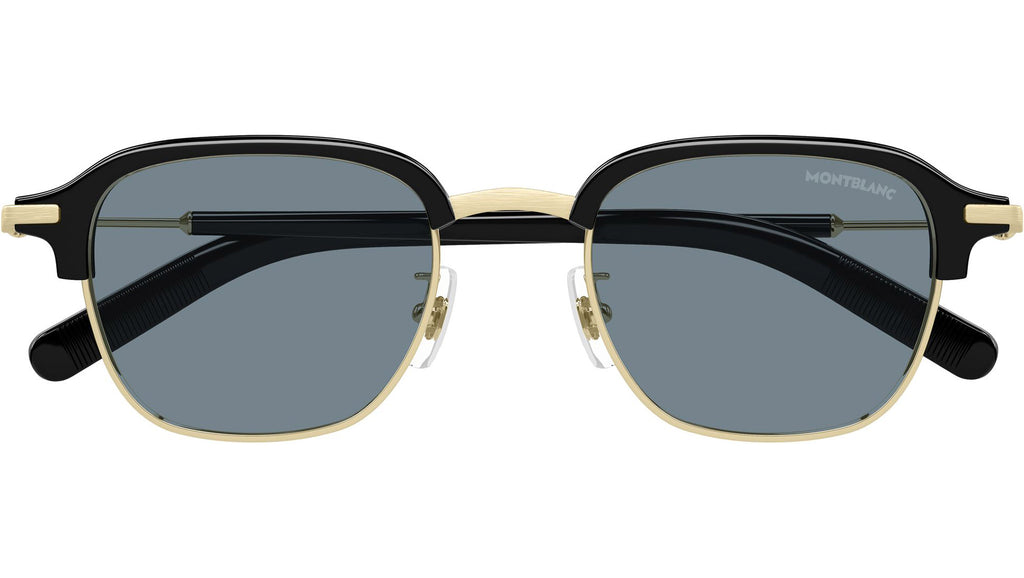 Occhiali da sole Montblanc MB0390S 002 uomo con montatura rettangolare in metallo oro chiaro lucido / cigliare nero lucido e lenti blu tinta unita. Linea: Snowcap. Codice modello: MB0390S. Codice colore: 002. Made in Japan. Rivenditore autorizzato Montblanc online. Gli occhiali vengono consegnati con custodia e accessori originali e sono coperti dalla garanzia ufficiale di 12 mesi del produttore.