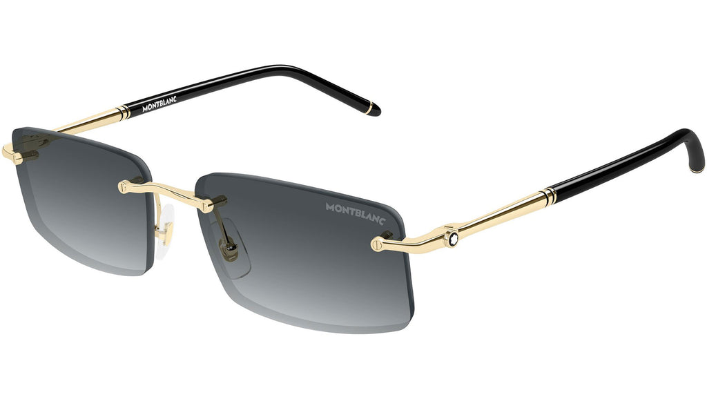 Occhiali da sole Montblanc MB0443S 007 uomo con montatura rettangolare in metallo oro chiaro lucido e lenti grigio sfumato. Linea: Meisterstück. Codice modello: MB0443S. Codice colore: 007. Made in Japan. Rivenditore autorizzato Montblanc online. Gli occhiali vengono consegnati con custodia e accessori originali e sono coperti dalla garanzia ufficiale di 12 mesi del produttore.