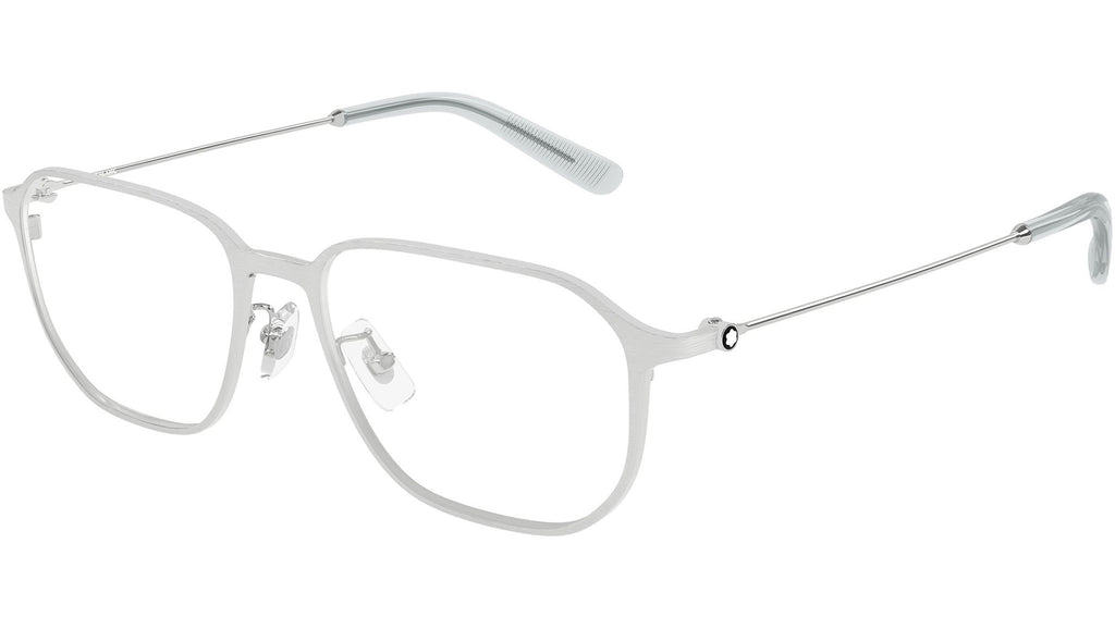 Occhiali da vista Montblanc MB0465OA 003 uomo con montatura geometrica in metallo finitura argento leggermente spazzolato lucido e lenti demo. Linea: Snowcap. Codice modello: MB0465OA. Codice colore: 003. Made in Italy. Rivenditore autorizzato Montblanc online. Gli occhiali vengono consegnati con custodia e accessori originali e sono coperti dalla garanzia ufficiale di 12 mesi del produttore.