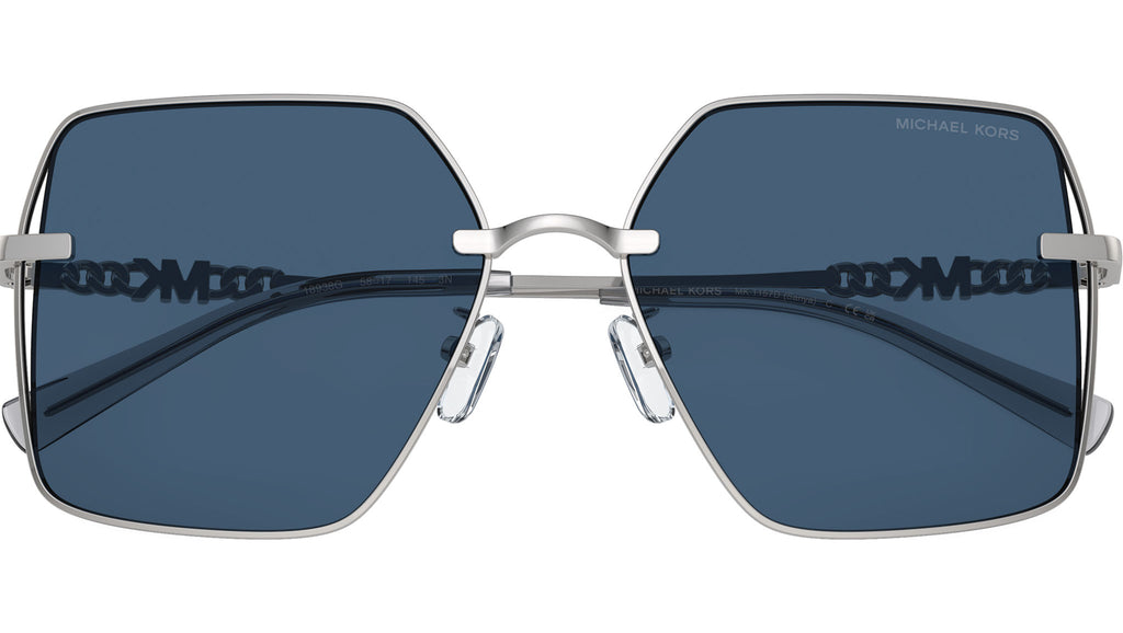 Occhiali da sole donna Michael Kors Sanya modello 1157D full rim in metallo argento lucido con lenti blu solido base 2. Vestibilità a ponte basso. Linea: Modern. Codice brand: 0MK1157D. Codice colore: 18938G. Rivenditore autorizzato online Michael Kors Eyewear. Ogni prodotto Michael Kors viene consegnato con astuccio originale e accessori ed è coperto da garanzia del produttore di 12 mesi.