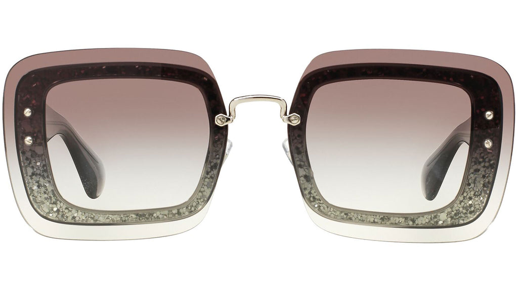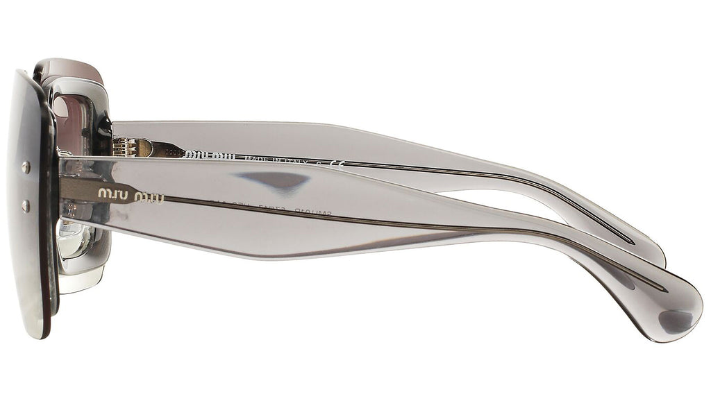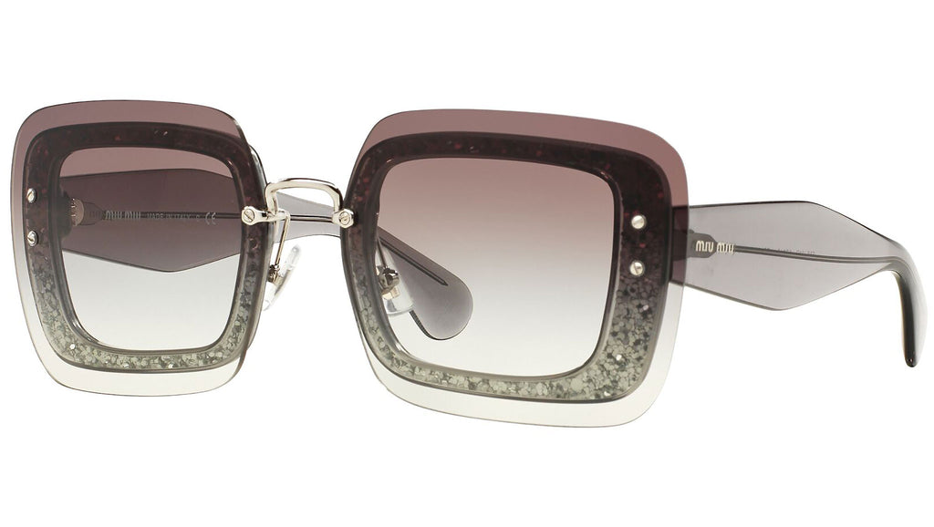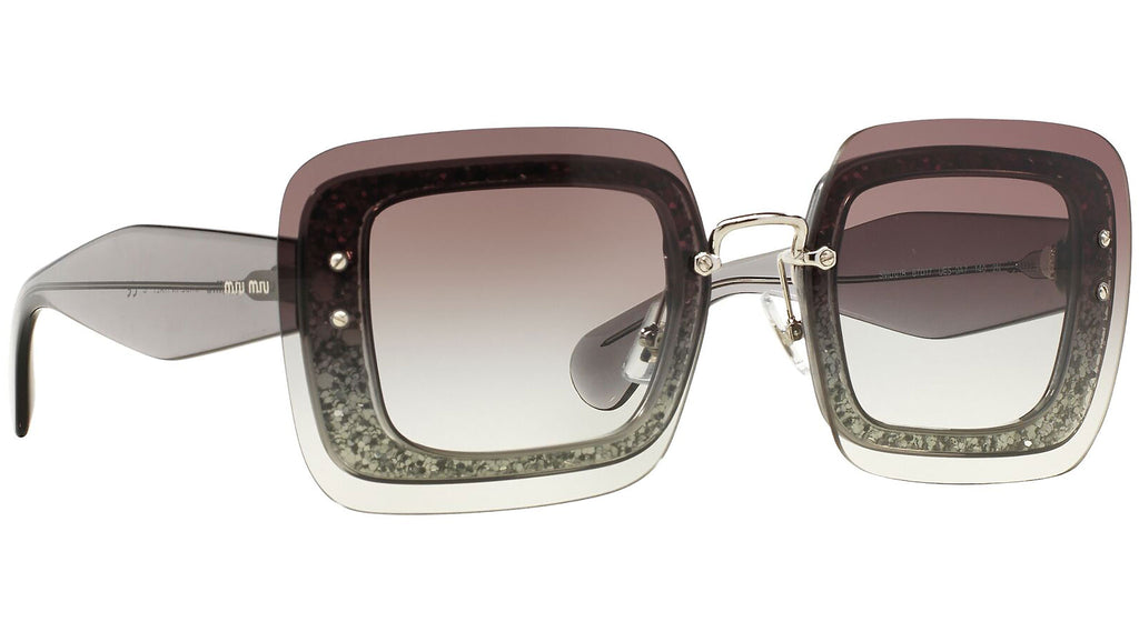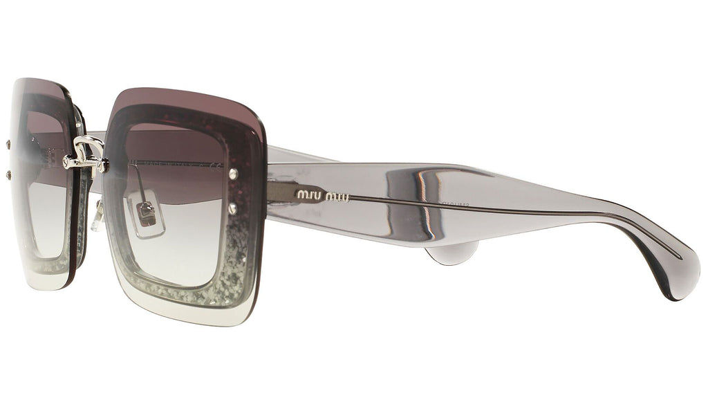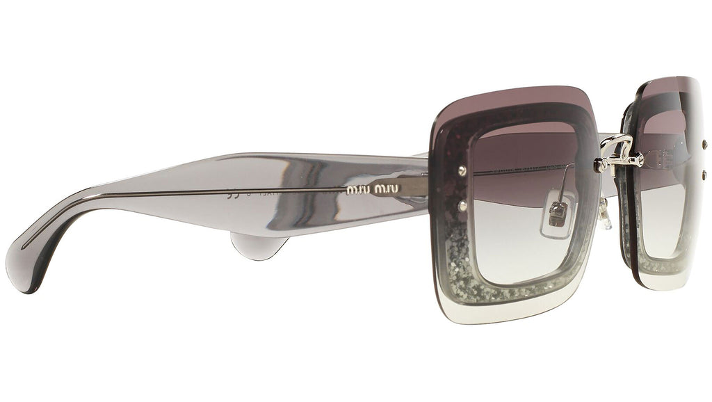 Occhiali da sole Miu Miu modello MU 01RS variante colore UES0A7 grigio glitter trasparente, con lenti color grigio sfumato. Miu Miu offre creazioni uniche, in cui la costante ricerca stilistica si combina perfettamente con la maestria artigianale della lavorazione. Le silhouette femminili e sinuose delle montature sono espressione di una ricchezza dei dettagli che rispecchia pienamente i codici stilistici e l’indiscusso talento del brand nell’unire il design non convenzionale ad un romanticismo dai rimandi retrò.