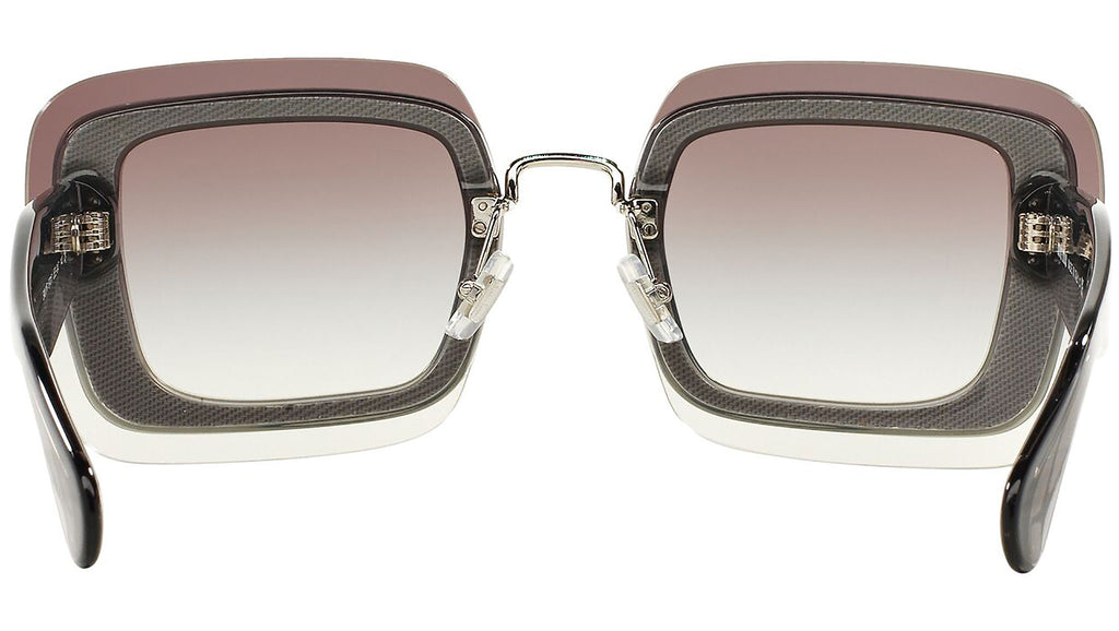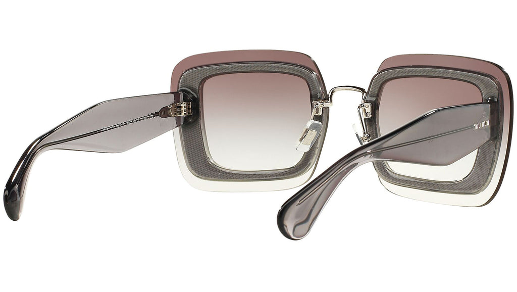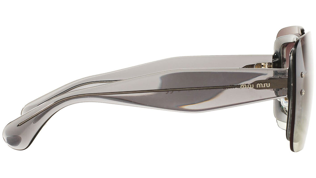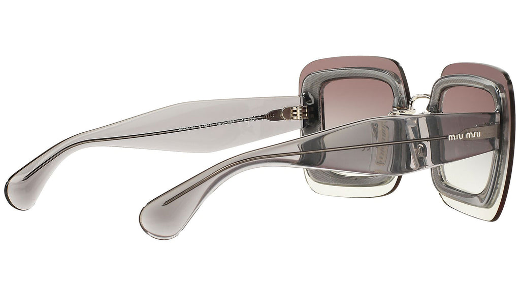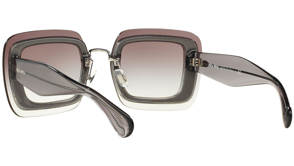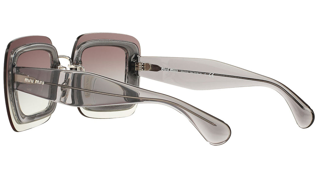 Occhiali da sole Miu Miu modello MU 01RS variante colore UES0A7 grigio glitter trasparente, con lenti color grigio sfumato. Miu Miu offre creazioni uniche, in cui la costante ricerca stilistica si combina perfettamente con la maestria artigianale della lavorazione. Le silhouette femminili e sinuose delle montature sono espressione di una ricchezza dei dettagli che rispecchia pienamente i codici stilistici e l’indiscusso talento del brand nell’unire il design non convenzionale ad un romanticismo dai rimandi retrò.