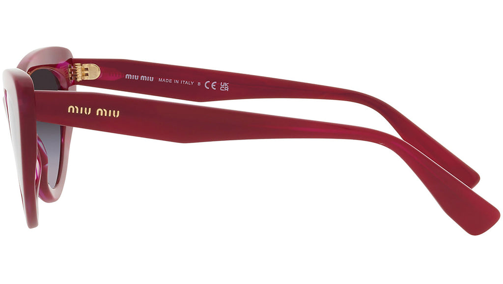 Occhiali da sole Miu Miu modello MU 70US variante colore 16H09S bordeaux, con lenti color grigio sfumato. Miu Miu offre creazioni uniche, in cui la costante ricerca stilistica si combina perfettamente con la maestria artigianale della lavorazione. Le silhouette femminili e sinuose delle montature sono espressione di una ricchezza dei dettagli che rispecchia pienamente i codici stilistici e l’indiscusso talento del brand nell’unire il design non convenzionale ad un romanticismo dai rimandi retrò.