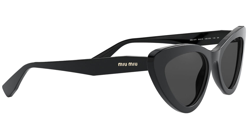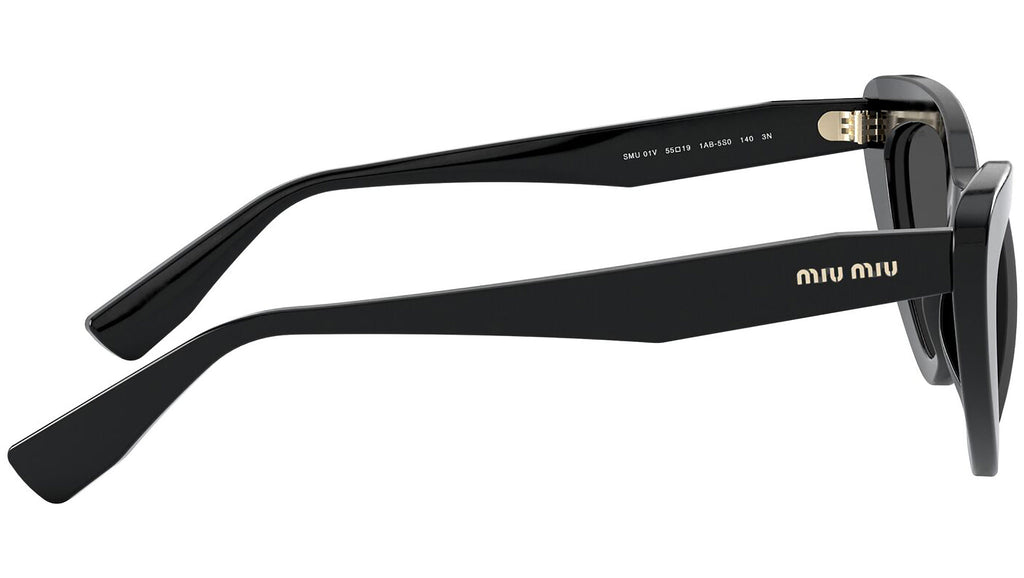Occhiali da sole Miu Miu modello MU 01VS variante colore 1AB5S0 nero, con lenti color grigio. Miu Miu offre creazioni uniche, in cui la costante ricerca stilistica si combina perfettamente con la maestria artigianale della lavorazione. Le silhouette femminili e sinuose delle montature sono espressione di una ricchezza dei dettagli che rispecchia pienamente i codici stilistici e l’indiscusso talento del brand nell’unire il design non convenzionale ad un romanticismo dai rimandi retrò.