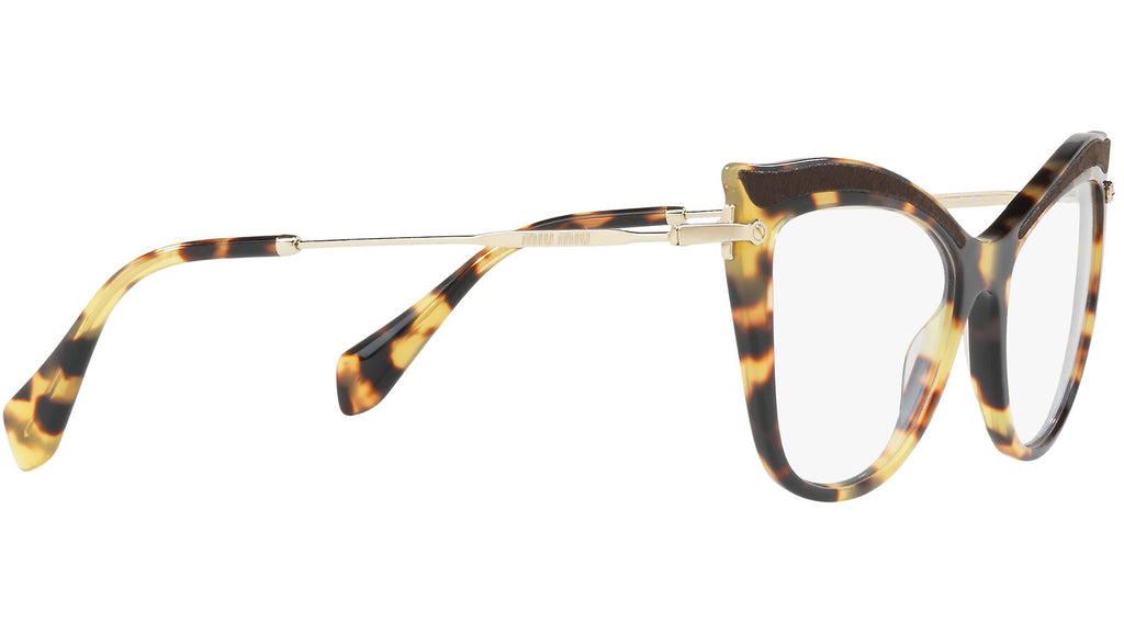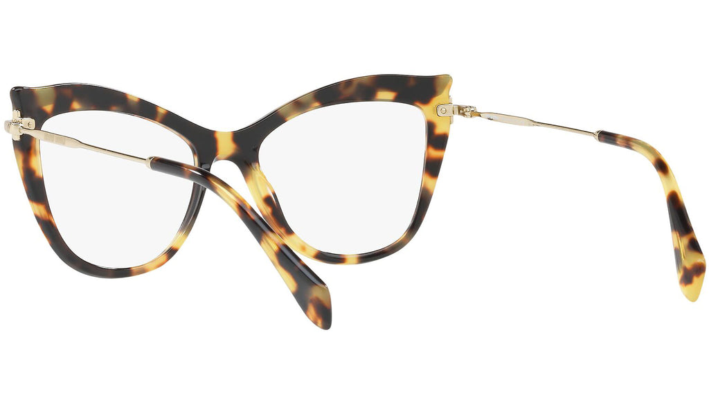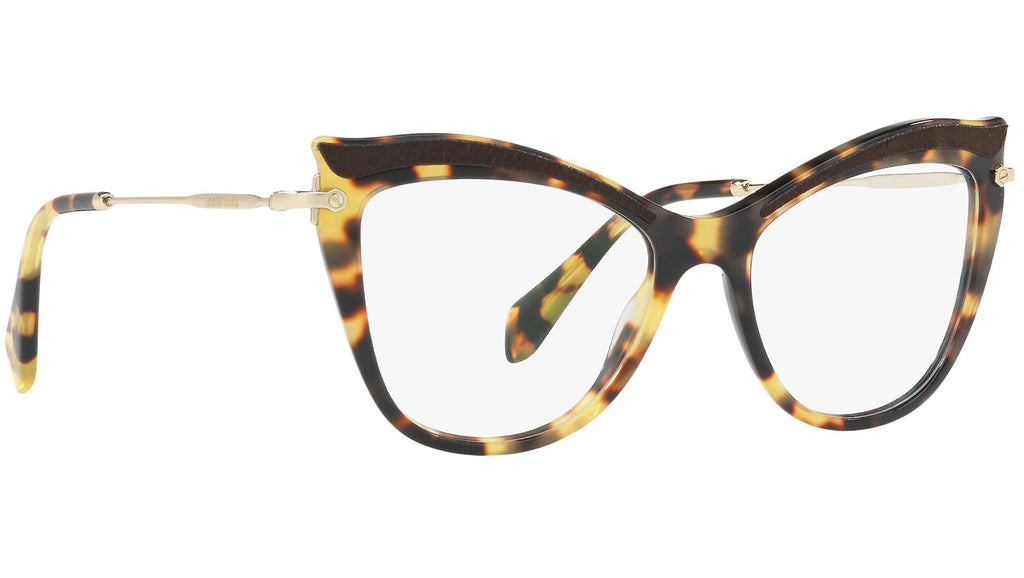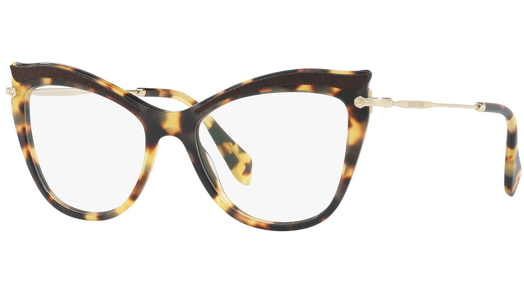 Occhiali da vista Miu Miu modello MU 06PV variante colore VIF1O1 avana chiaro. Miu Miu offre creazioni uniche, in cui la costante ricerca stilistica si combina perfettamente con la maestria artigianale della lavorazione. Le silhouette femminili e sinuose delle montature sono espressione di una ricchezza dei dettagli che rispecchia pienamente i codici stilistici e l’indiscusso talento del brand nell’unire il design non convenzionale ad un romanticismo dai rimandi retrò.