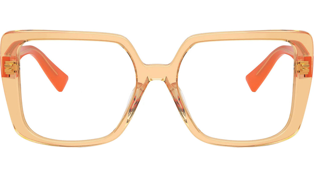 Montatura da vista Miu Miu modello MU 06VV codice colore 12M1O1 con montatura color arancia in acetato e lenti demo. Miu Miu offre creazioni uniche, in cui la costante ricerca stilistica si combina perfettamente con la maestria artigianale della lavorazione. Le silhouette femminili e sinuose delle montature sono espressione di una ricchezza dei dettagli che rispecchia pienamente i codici stilistici e l’indiscusso talento del brand nell’unire il design non convenzionale ad un romanticismo dai rimandi retrò.
