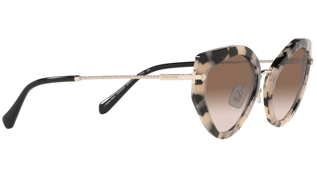 Occhiali da sole Miu Miu modello MU 08XS variante colore 07D0A6 avana rosa, con lenti color marrone sfumato. Miu Miu offre creazioni uniche, in cui la costante ricerca stilistica si combina perfettamente con la maestria artigianale della lavorazione. Le silhouette femminili e sinuose delle montature sono espressione di una ricchezza dei dettagli che rispecchia pienamente i codici stilistici e l’indiscusso talento del brand nell’unire il design non convenzionale ad un romanticismo dai rimandi retrò.