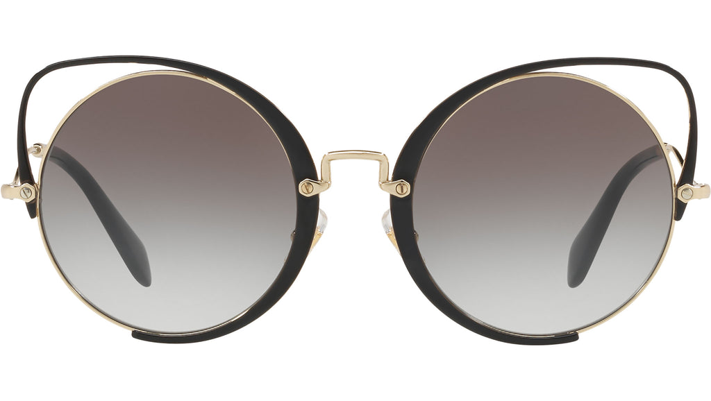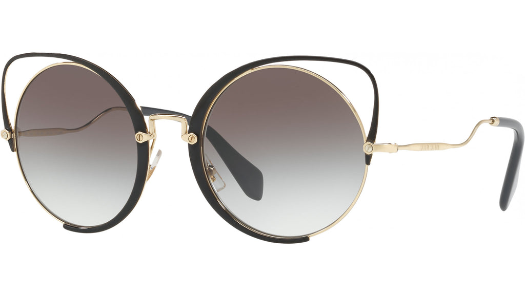 Occhiali da sole Miu Miu modello MU 70US variante colore 1AB0A7 oro chiaro / nero, con lenti color grigio sfumato. Miu Miu offre creazioni uniche, in cui la costante ricerca stilistica si combina perfettamente con la maestria artigianale della lavorazione. Le silhouette femminili e sinuose delle montature sono espressione di una ricchezza dei dettagli che rispecchia pienamente i codici stilistici e l’indiscusso talento del brand nell’unire il design non convenzionale ad un romanticismo dai rimandi retrò.