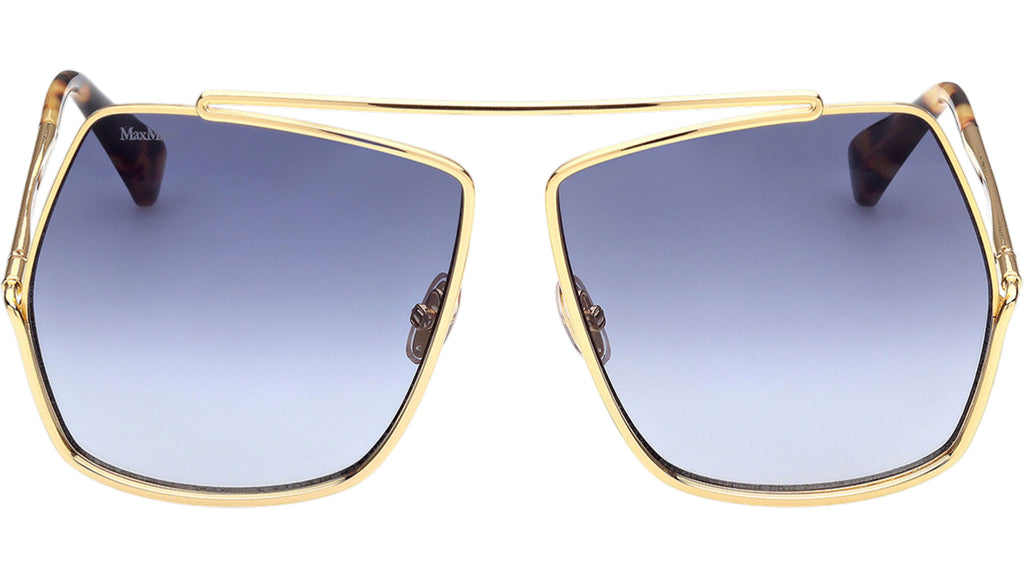 Occhiali da sole Max Mara donna modello Elsa MM0006 con montatura geometrica full-rim in metallo oro intenso lucido e lenti color blu sfumato. Made in Italy. Codice Brand: MM 0006. Codice colore: 30W. Rivenditore autorizzato Max Mara online. Gli occhiali vengono consegnati con custodia e accessori originali e sono coperti da garanzia standard di 12 mesi del produttore.