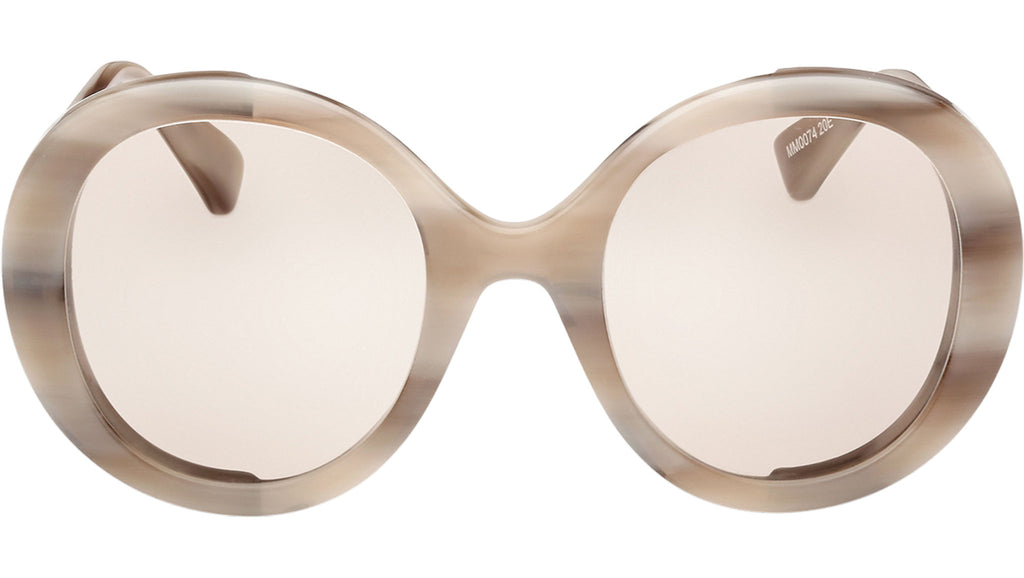 Occhiali da sole Max Mara donna modello Renee MM0074 con montatura rotonda full-rim in acetato marrone striato e lenti color marrone chiaro. Made in Italy. Codice Brand: MM 0074. Codice colore: 20E. Rivenditore autorizzato Max Mara online. Gli occhiali vengono consegnati con custodia e accessori originali e sono coperti da garanzia standard di 12 mesi del produttore.