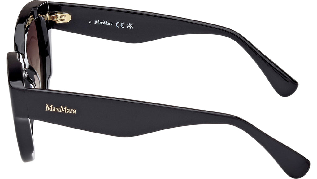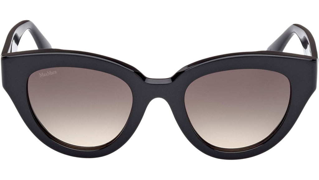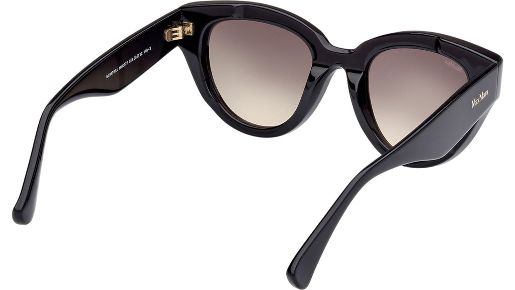 Occhiali da sole Max Mara donna modello Glimpse1 MM0077 con montatura cat eye full-rim in acetato nero lucido e lenti color grigio fumo sfumato. Made in Italy. Codice Brand: MM 0077. Codice colore: 01B. Rivenditore autorizzato Max Mara online. Gli occhiali vengono consegnati con custodia e accessori originali e sono coperti da garanzia standard di 12 mesi del produttore.