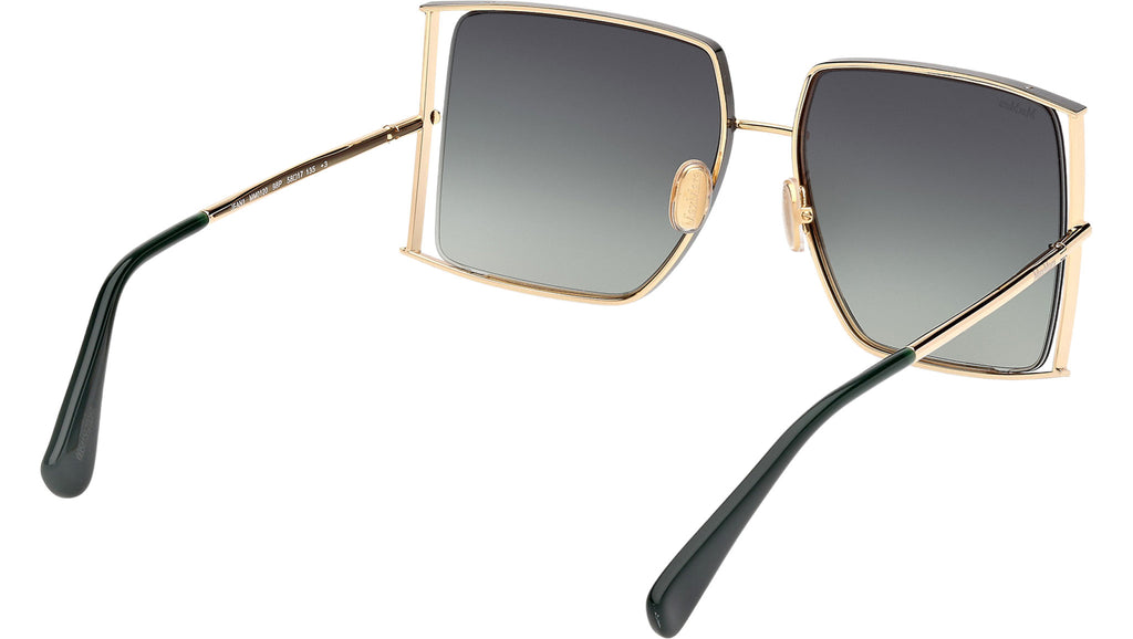 Occhiali da sole Max Mara donna modello Jean1 MM0120 con montatura rettangolare full-rim in metallo verde scuro lucido e lenti color verde sfumato. Made in Italy. Codice Brand: MM 0120. Codice colore: 98P. Rivenditore autorizzato Max Mara online. Gli occhiali vengono consegnati con custodia e accessori originali e sono coperti da garanzia standard di 12 mesi del produttore.