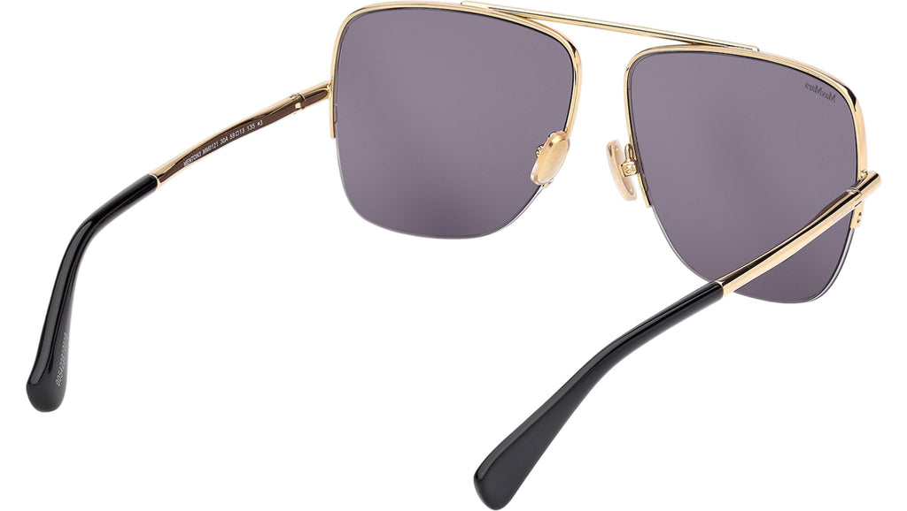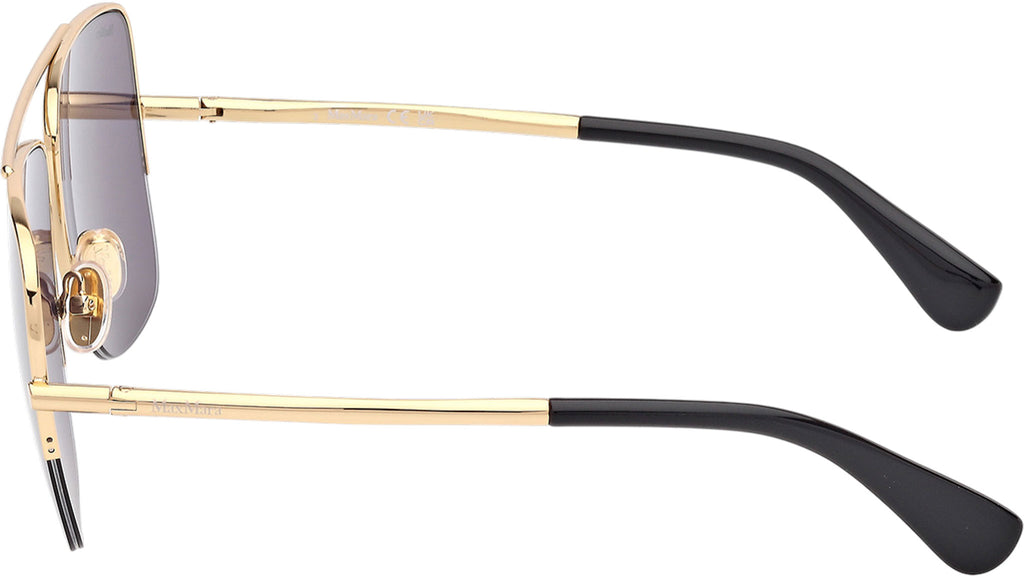 Occhiali da sole Max Mara donna modello Menton3 MM0121 con montatura navigator full-rim in metallo oro intenso lucido e lenti color grigio fumo. Made in Italy. Codice Brand: MM 0121. Codice colore: 30A. Rivenditore autorizzato Max Mara online. Gli occhiali vengono consegnati con custodia e accessori originali e sono coperti da garanzia standard di 12 mesi del produttore.