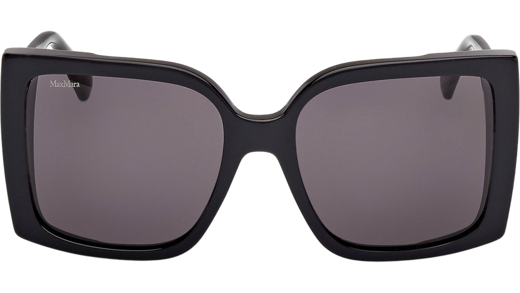 Occhiali da sole Max Mara donna modello Hinge MM0131 con montatura squadrata full-rim in acetato nero lucido e lenti color grigio fumo. Made in Italy. Codice Brand: MM 0131. Codice colore: 01A. Rivenditore autorizzato Max Mara online. Gli occhiali vengono consegnati con custodia e accessori originali e sono coperti da garanzia standard di 12 mesi del produttore.