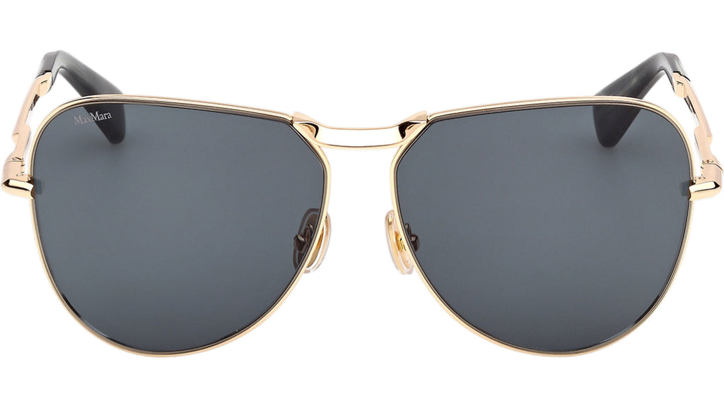 Occhiali da sole Max Mara donna modello Miller-2 MM0134 con montatura navigator full-rim in metallo oro intenso lucido e lenti color verde. Made in Italy. Codice Brand: MM 0134. Codice colore: 30N. Rivenditore autorizzato Max Mara online. Gli occhiali vengono consegnati con custodia e accessori originali e sono coperti da garanzia standard di 12 mesi del produttore.