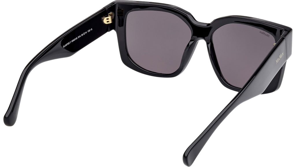 Occhiali da sole Max Mara donna modello Glimpse-7 MM0145 con montatura rotonda full-rim in acetato nero lucido e lenti color grigio fumo. Made in Italy. Codice Brand: MM 0145. Codice colore: 01A. Rivenditore autorizzato Max Mara online. Gli occhiali vengono consegnati con custodia e accessori originali e sono coperti da garanzia standard di 12 mesi del produttore.