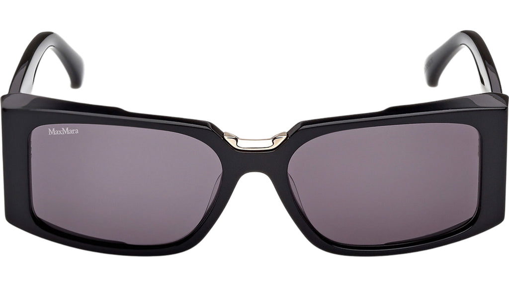 Occhiali da sole Max Mara donna modello Spark9 MM0159 con montatura rettangolare full-rim in acetato nero lucido e lenti color grigio fumo. Made in Italy. Codice Brand: MM 0159. Codice colore: 01A. Rivenditore autorizzato Max Mara online. Gli occhiali vengono consegnati con custodia e accessori originali e sono coperti da garanzia standard di 12 mesi del produttore.